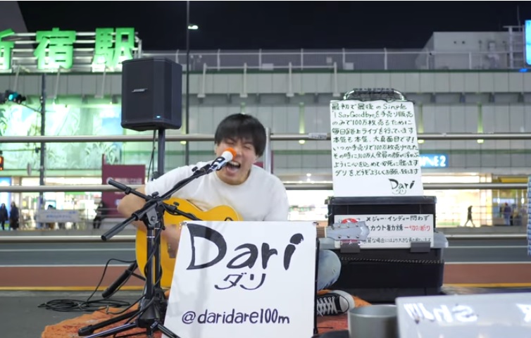 Dari(ダリ)シンガーソングライターオリジナルソング「I Say Goodbye」を手売りで100万枚売るために、ほぼ毎日路上ライブをしている熱い男「Dari」さん。真冬の新宿で半そで姿で歌う姿は、歌に駆ける情熱が伝わってきます!!